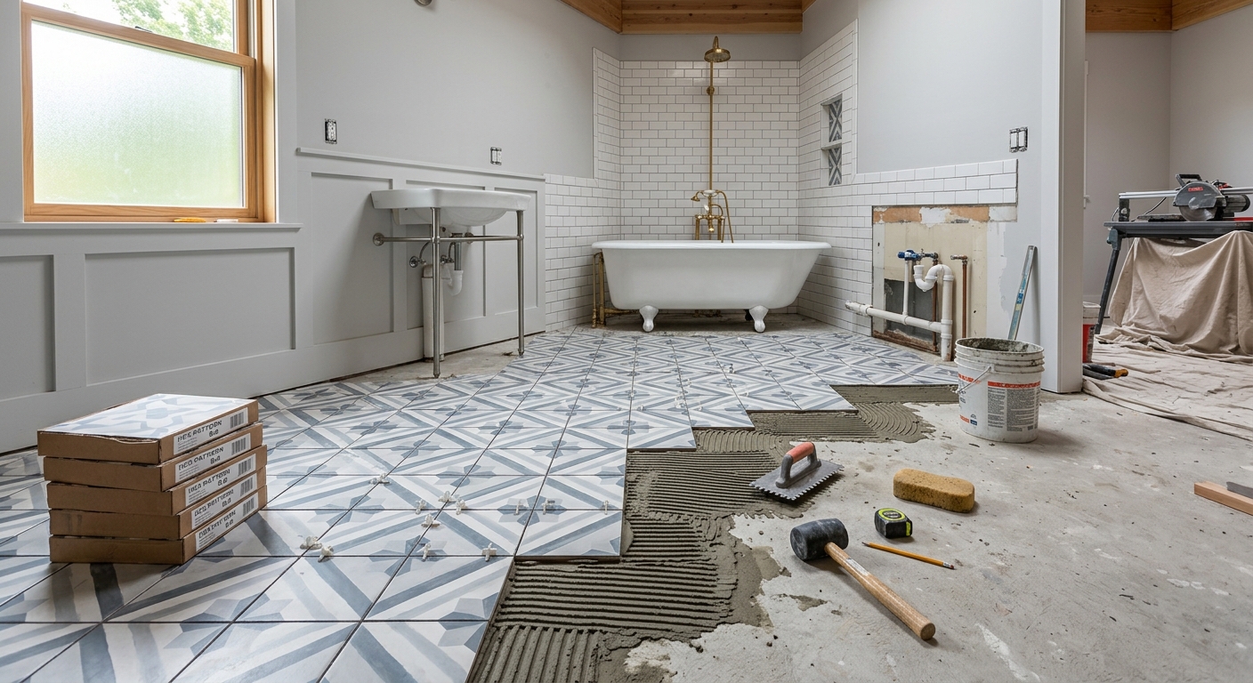 Floor and wall tile installation with professional membrane waterproofing. Essential for lasting results.