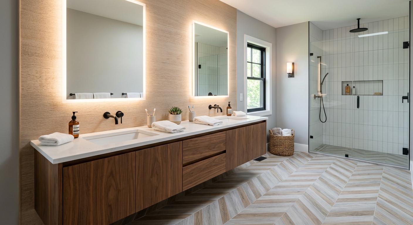 Complete bathroom remodels in Edmonton — from demo to final finish. Tile, shower, vanity, fixtures and lighting.