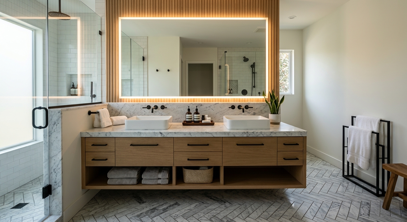 Complete bathroom remodels in Varsity — from demo to final finish. Tile, shower, vanity, fixtures and lighting.